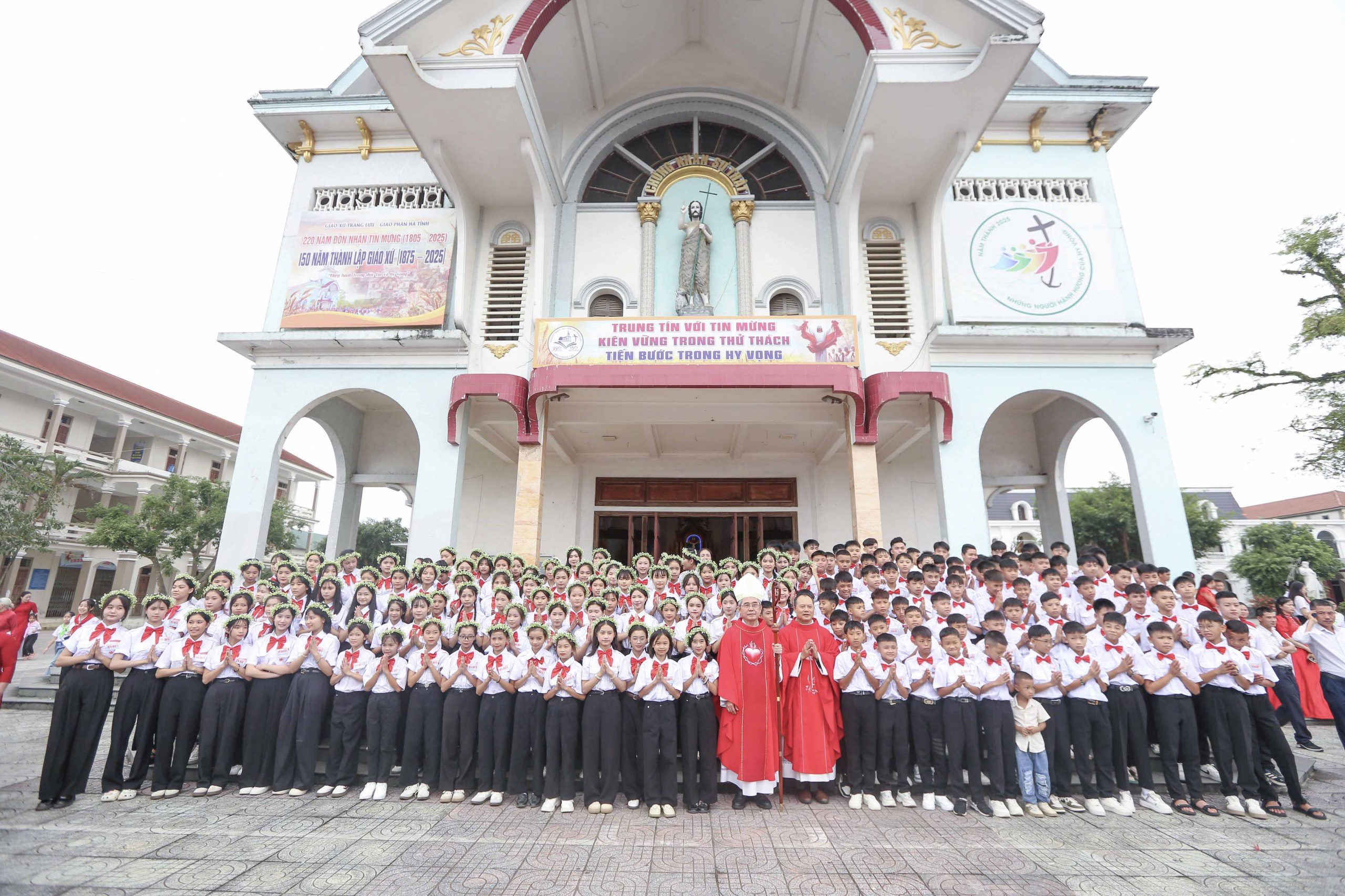 GPHT (09.11.2025) – Sáng thứ Bảy, ngày 8/11/2025 – ngày thứ Hai trong ba ngày cao điểm của Tuần Chầu Đền Tạ, Giáo xứ Đức Vọng hân hoan chào đón Đức cha Louis Nguyễn Anh Tuấn – Giám mục Giáo phận, đến chủ sự Thánh lễ và ban Bí tích Thêm Sức cho 96 em thiếu nhi trong giáo xứ. Hiệp dâng Thánh lễ cùng Đức Cha có quý Cha trong và ngoài Giáo hạt Ngàn Phố, quý tu sĩ, chủng sinh và đông đảo cộng đoàn dân Chúa.